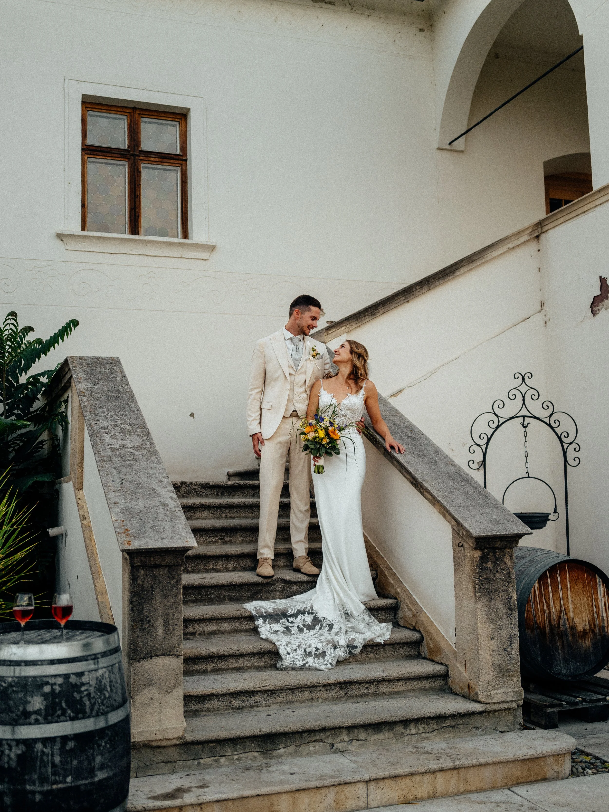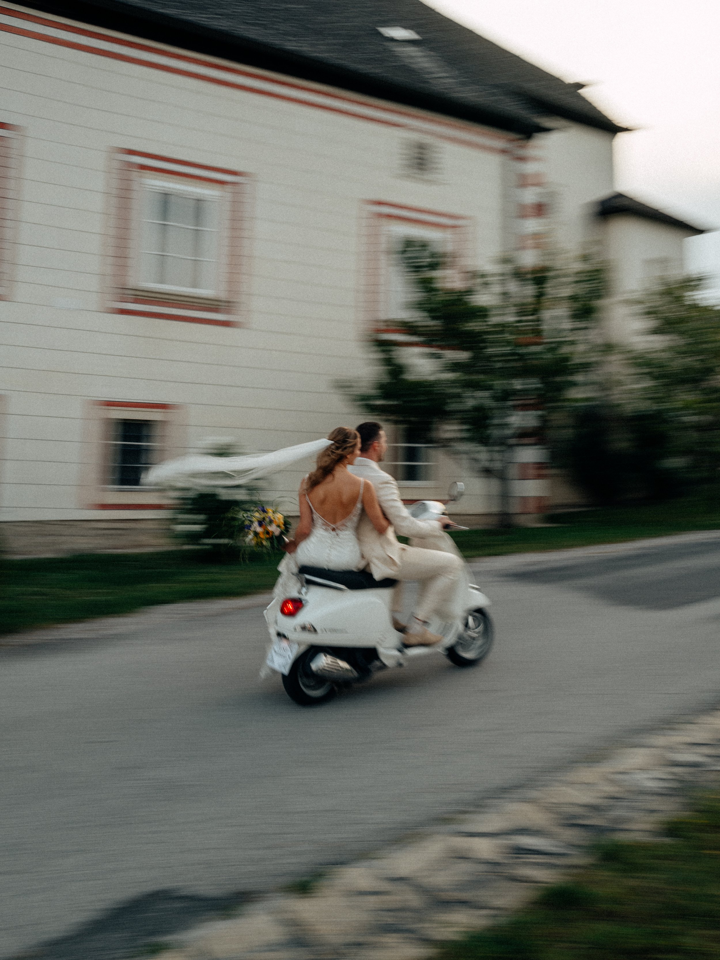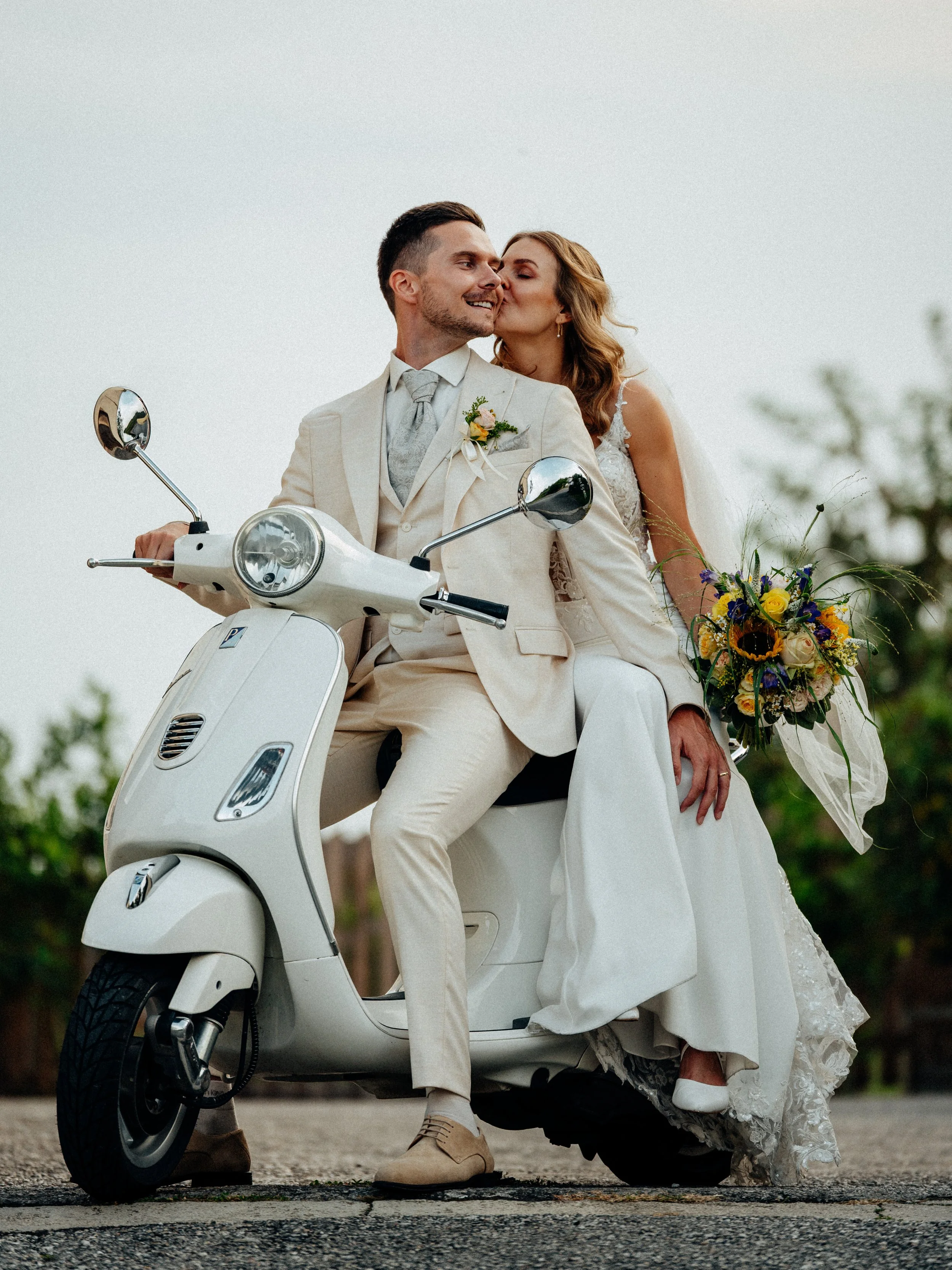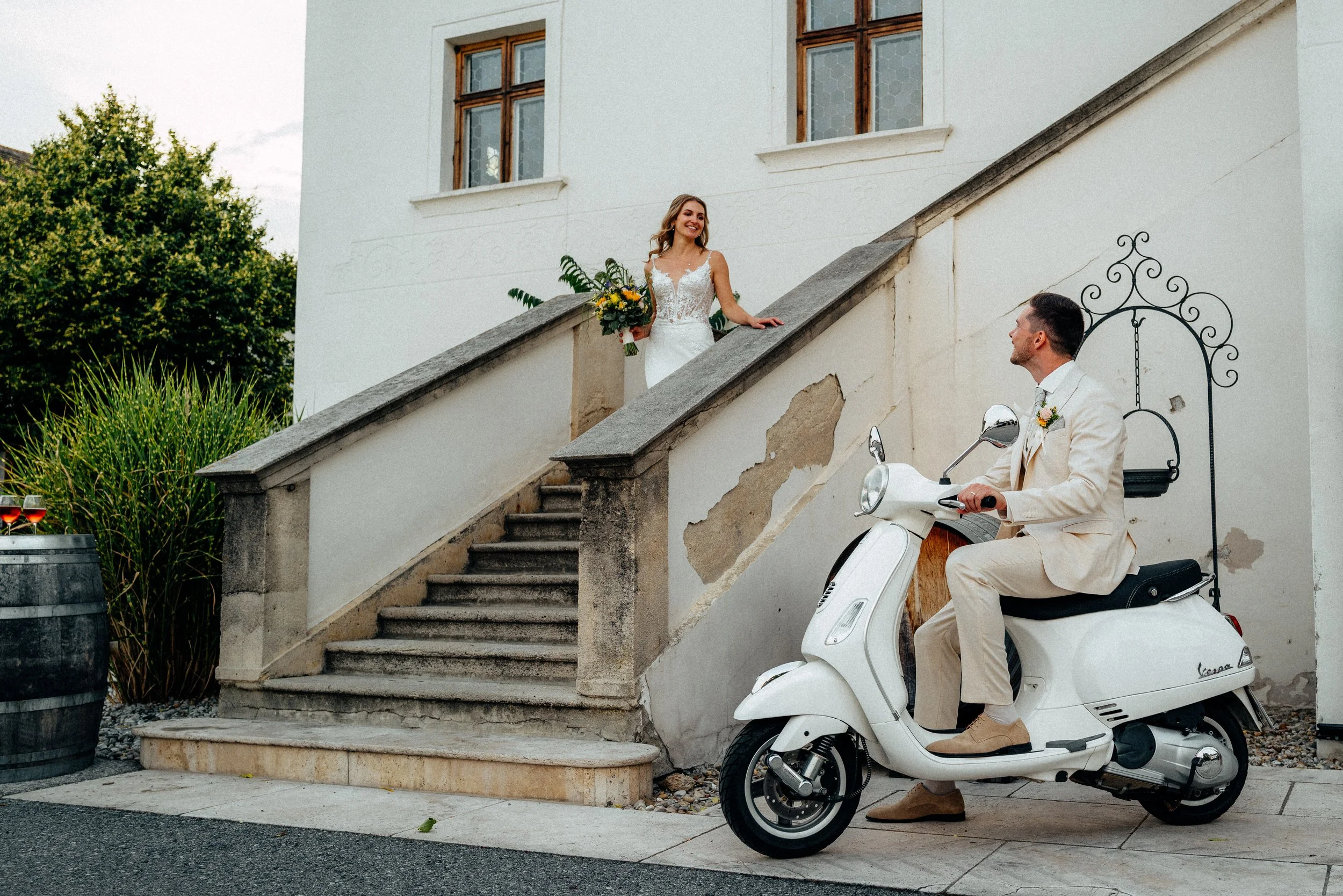 Diese Hochzeit führte mich nach Gumpoldskirchen und ins Weingut Thallern in der wunderschönen Thermenregion südlich von Wien – eine Kombination, die sich perfekt für natürliche und kreative Hochzeitsfotos anbietet. Die Atmosphäre, die malerischen Weinreben und das italienische Flair einer Vespa boten die ideale Kulisse für ein lebendiges, stilvolles Paarshooting.