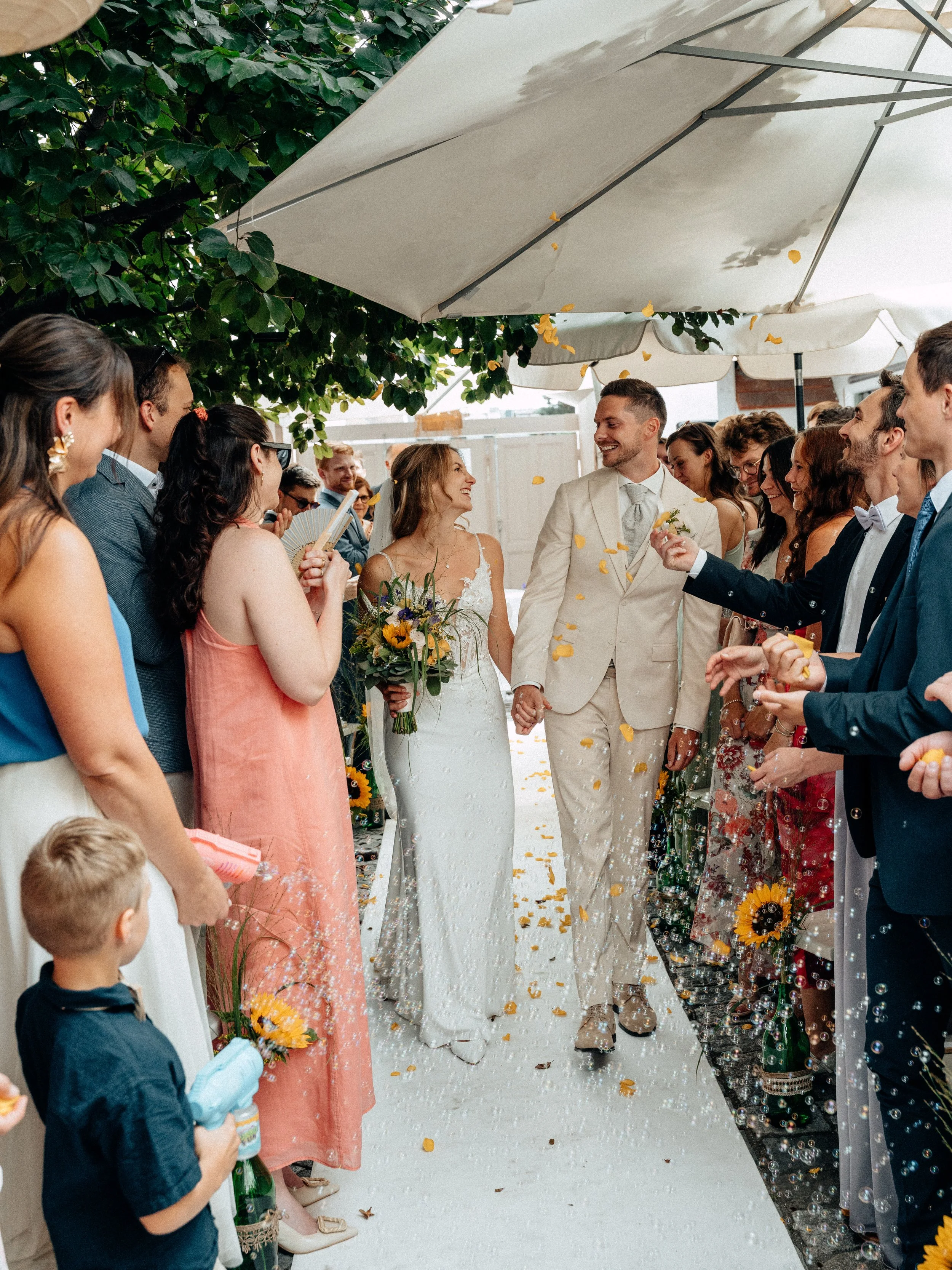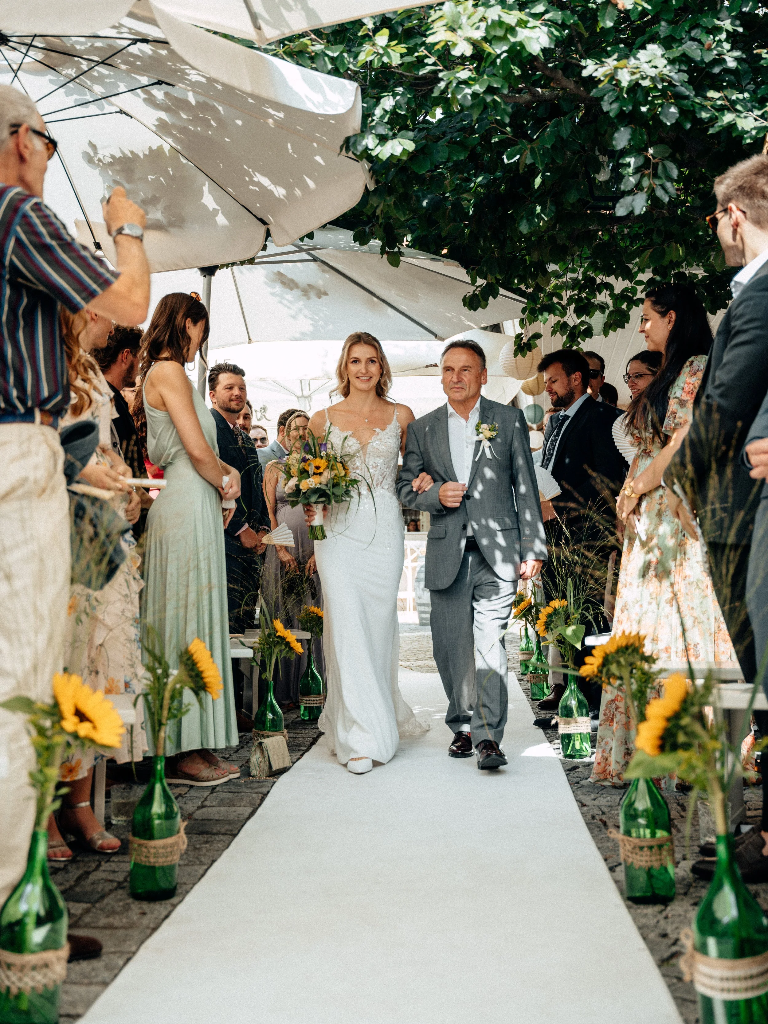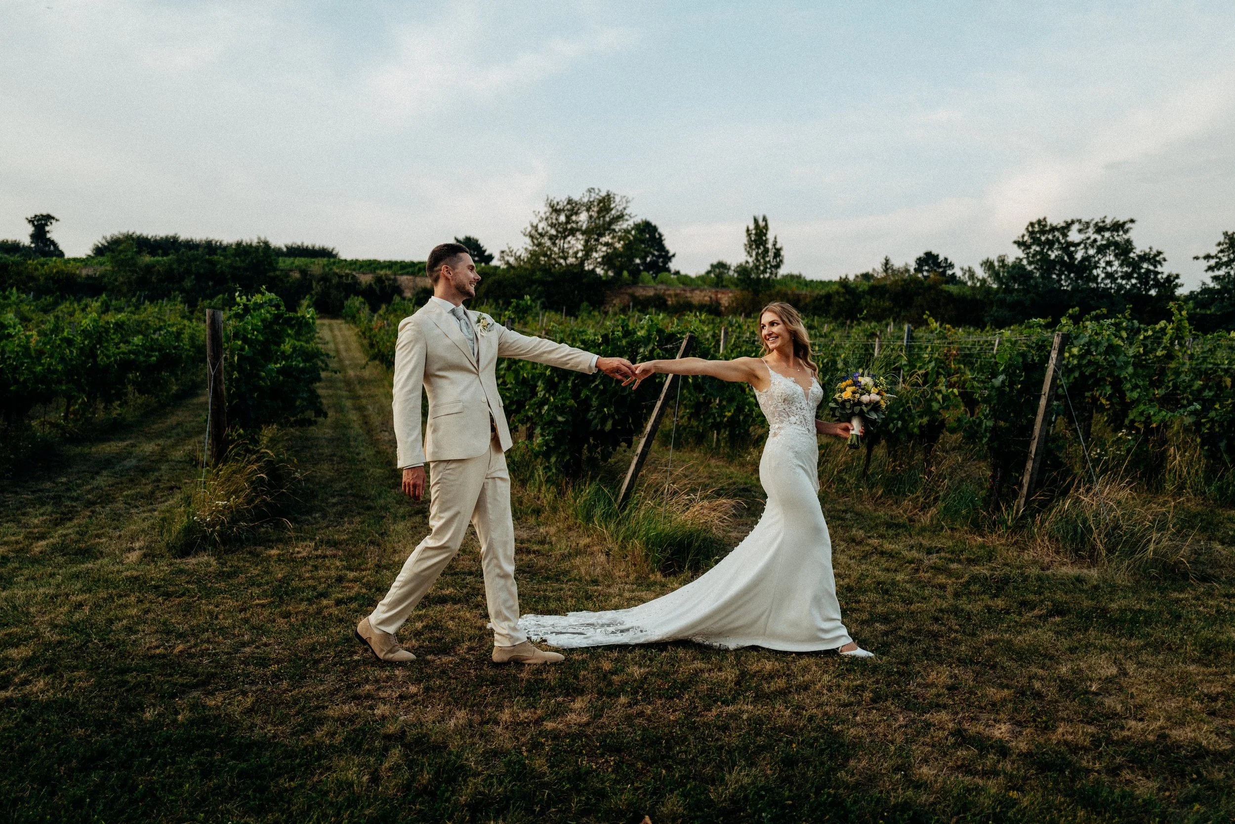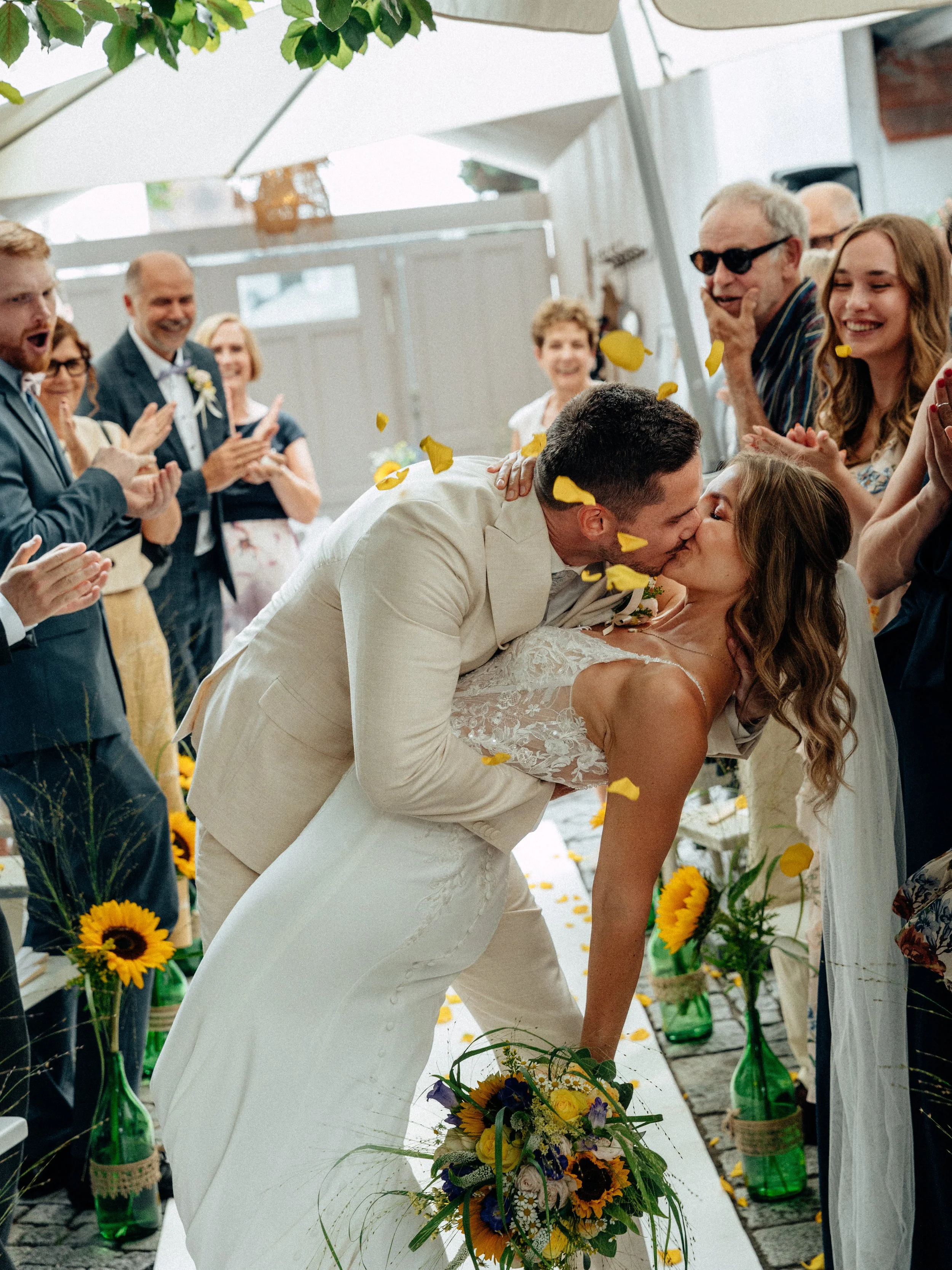 Diese Hochzeit führte mich nach Gumpoldskirchen und ins Weingut Thallern in der wunderschönen Thermenregion südlich von Wien – eine Kombination, die sich perfekt für natürliche und kreative Hochzeitsfotos anbietet. Die Atmosphäre, die malerischen Weinreben und das italienische Flair einer Vespa boten die ideale Kulisse für ein lebendiges, stilvolles Paarshooting.