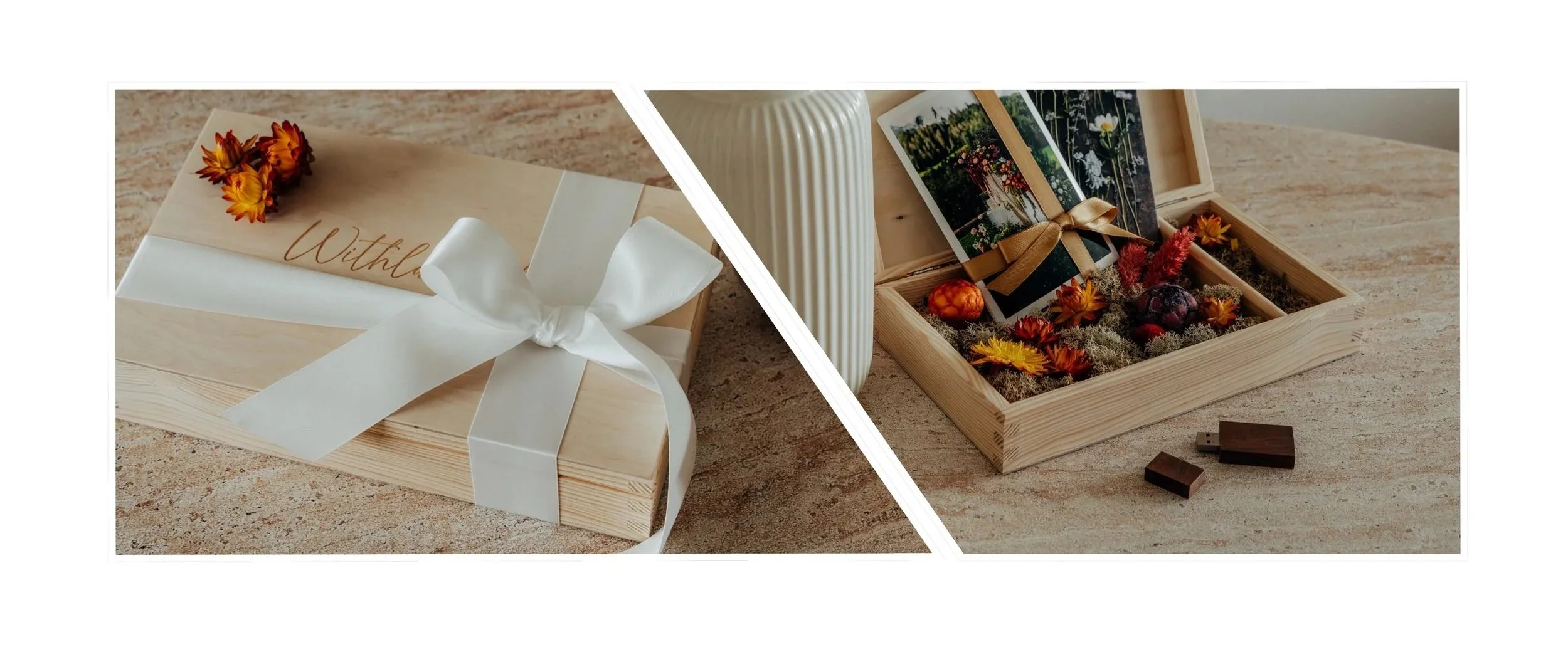 Hochwertige Holzbox & USB Stick bei der Übergabe